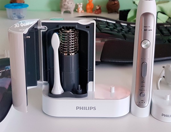 Помучился-помучился - и заказал подороже, но почти один в один как та, которая у меня была - Sonicare FlexCare Platinum. И это НАСТОЛЬКО другое дело! Полный набор клавиш управления (регулировка уровня вибрации, переключение режимов), совершенно другая щетка - просто шикарная, - дорожный чехол, дорожная зарядка, крэдл для зарядки со стойкой, куда можно поставить две запасные щетки (в комплекте идут две щетки разного назначения).