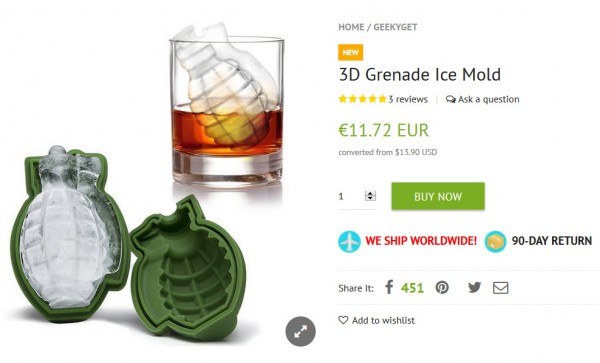 Никакие 12 эта штука не стоит, ясный пень, заходим на Aliexpress и там находим кучу предложений от двух до трех евро. Возьму себе, я летом часто воду со льдом пью, буду самому себе гранату в стакан кидать.