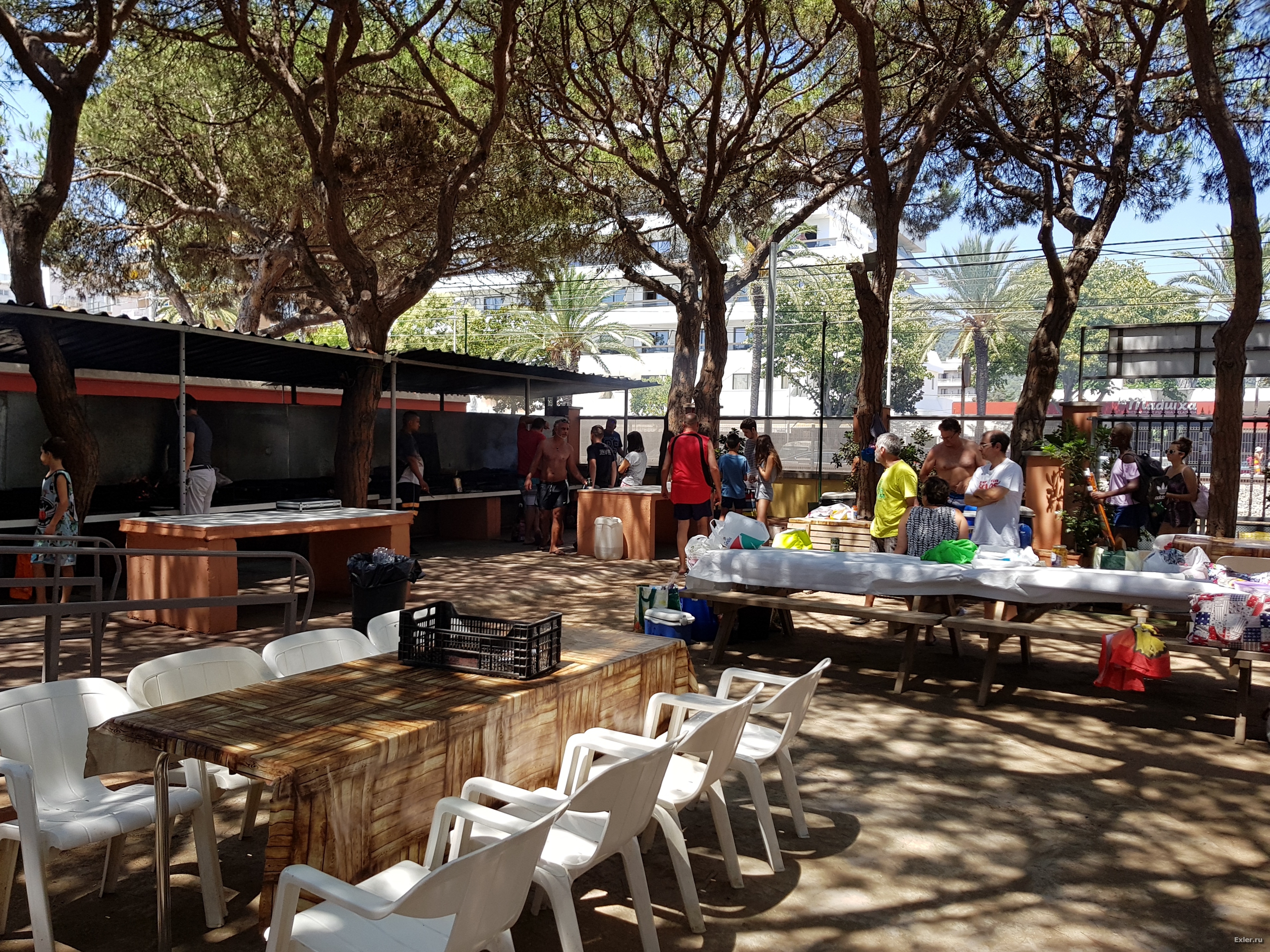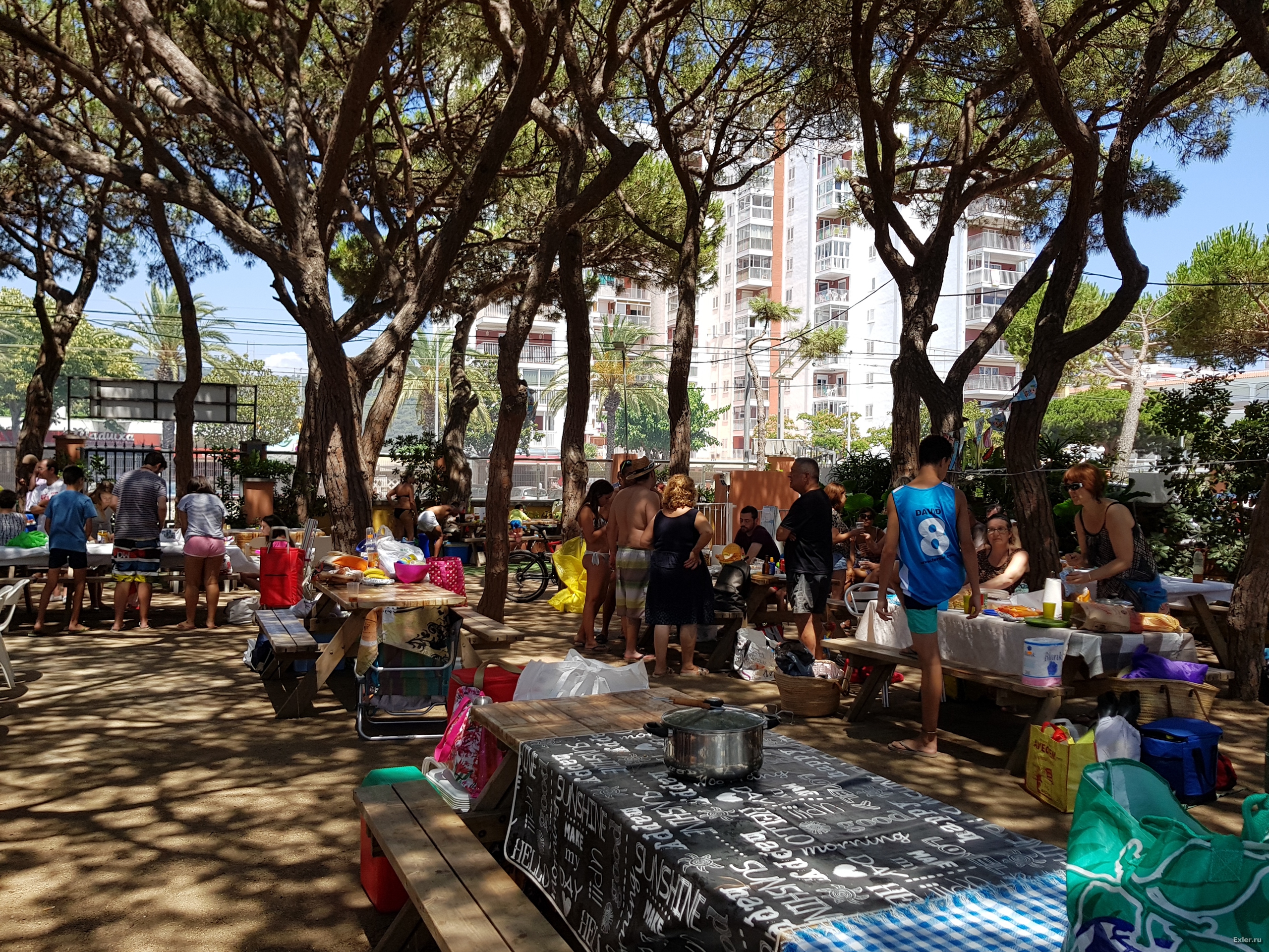 В Санта-Сусанне при одном отельчике есть вот такая полянка для пикников: столы, которые по-всякому комбинируются, ряд небольших мангалов, мусорные баки, туалеты, душ, ровно в двух шагах пляж - в общем, красота, очень удобно. Стол и мангал сдается в аренду и постояльцам отеля, и всем желающим - 110 за стол и он ваш с 10 утра до 20 часов. За мангал, если он нужен, дополнительно пятерка.