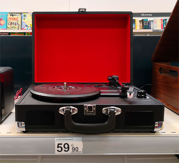 Нет, винил в Испании мало кто слушает (хотя любители есть, конечно), но вот беспроводные колонки в виде старинных проигрывателей - очень даже модные. Я сначала их в Андорре встретил, а теперь смотрю и в местных испанских магазинах появились.