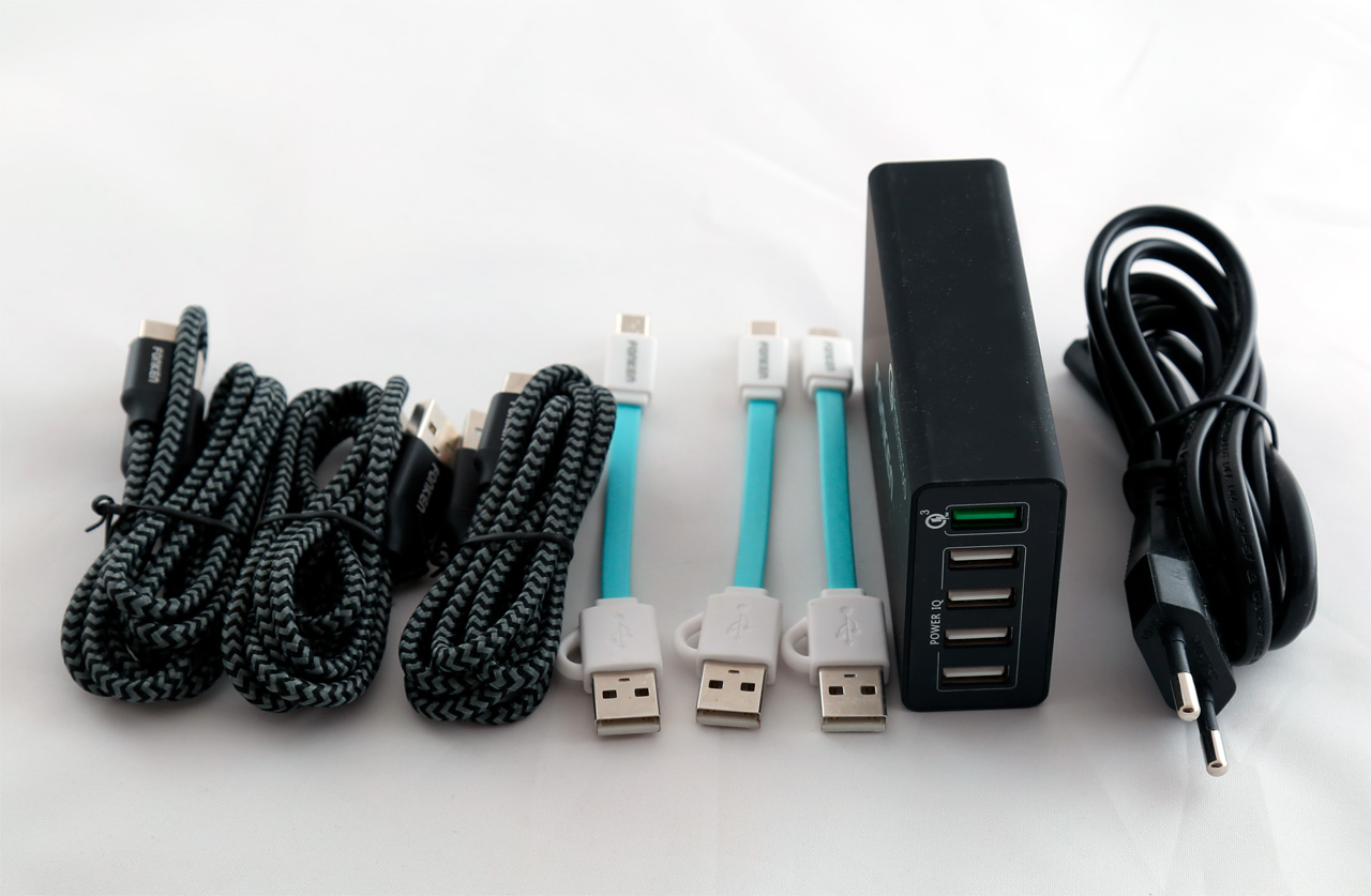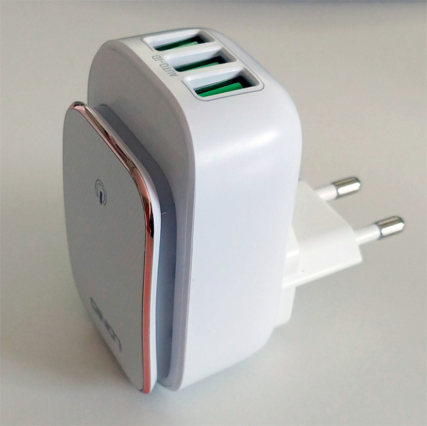 На "Али" как-то углядел любопытную штуку - удлинитель на три розетки и он же зарядный хаб на шесть USB-портов. USB выдает 5V и до 3.4А. Обычного этого вполне достаточно для всех устройств: поставил на ночь заряжаться и голова не болит.