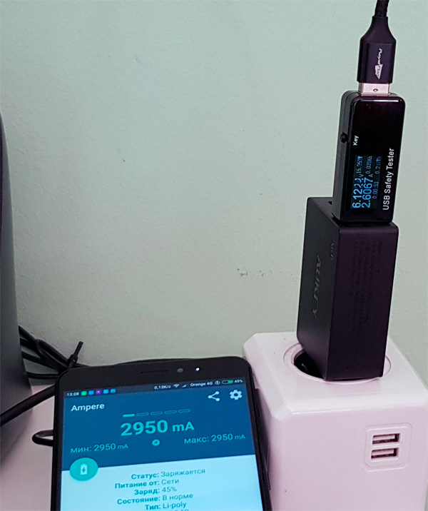 Ну и сравнил с тем, что показывает программа Ampere на телефоне. Разница есть, но не слишком существенная.