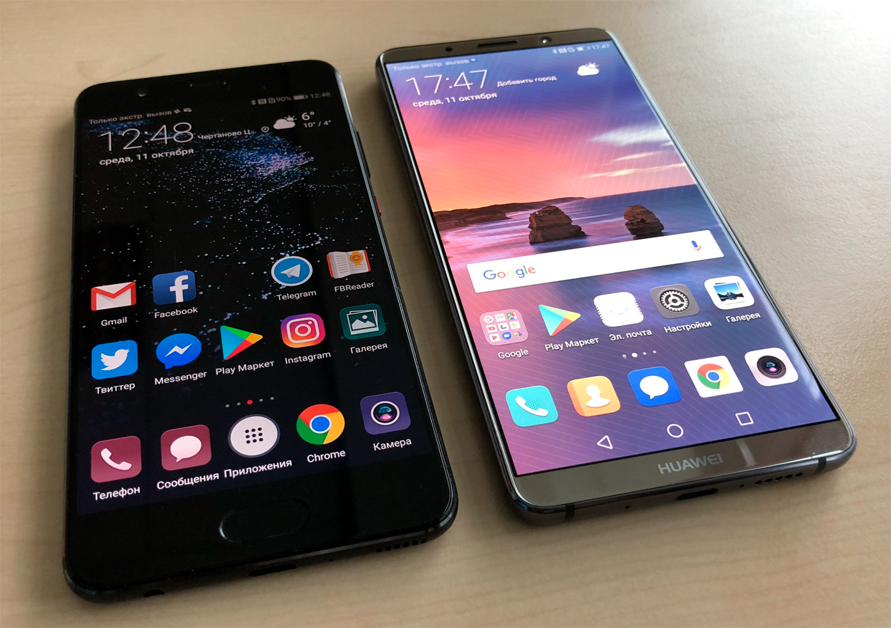 Слева P10 (в металле), справа Mate 10 (в стекле).