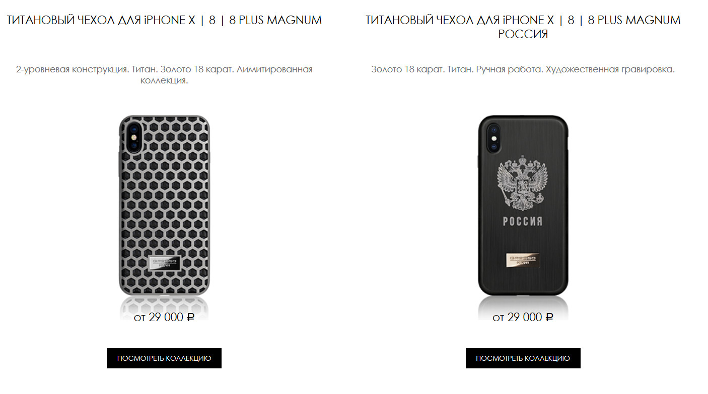 Если вам не по карману цельный инкрустированный айфон (ну, может, вы просто мелкий сотрудник городской администрации), то можно взять отдельно чехольчик за 29 тыров. Но тоже с Россией.